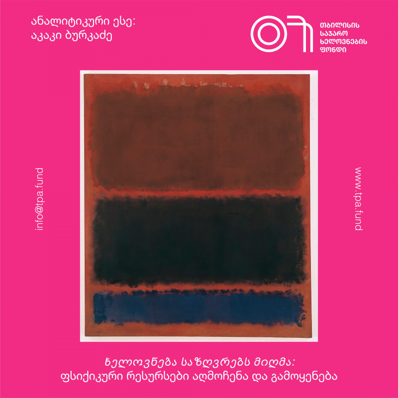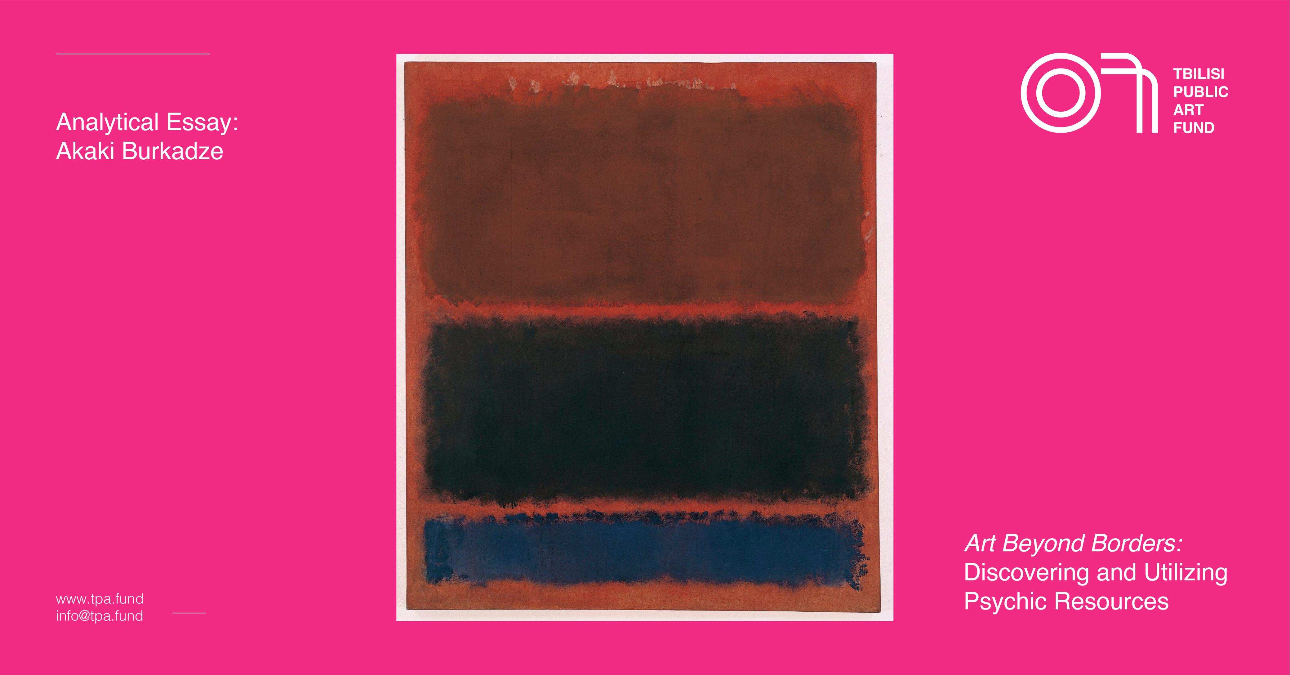 In writing this analytical essay, the main inspirational source became a canvas by Mark Rothko – No. 24 (Brown, Black and Blue), 1958, with sorrow, charge, and melancholy of its browns, blacks, and deep blues. The subject of this canvas is human stories; Fragments of autobiographical memory, ones with no ties to Rothko. It has no other subject. The purpose of the colors is to dive into own subconscious, draw a story, and self-analyze. This picture is a frame, within which the viewer composes their narrative. This gives stimulus to raw conversation. Infatuation with the physiological literature and mythology, immersion in the archetypes of the ancient world, and their revival in contemporary life, bold experiments in selecting imagery and color – all point to Rothko knowing exactly what he was creating. He is one of the 20th-century intelligentsia of painters, who realized that the gods and demons hidden in the human psyche clash in the oeuvres of modern authors. They awaken the viewers’ fantasies. They are not aimed at bringing aesthetic satisfaction and transmission to a static state, but rather evoking sensations and thoughts, encouraging spiritual or physical motion, and last but not least - mental catharsis.
