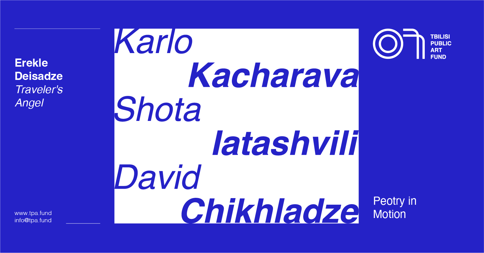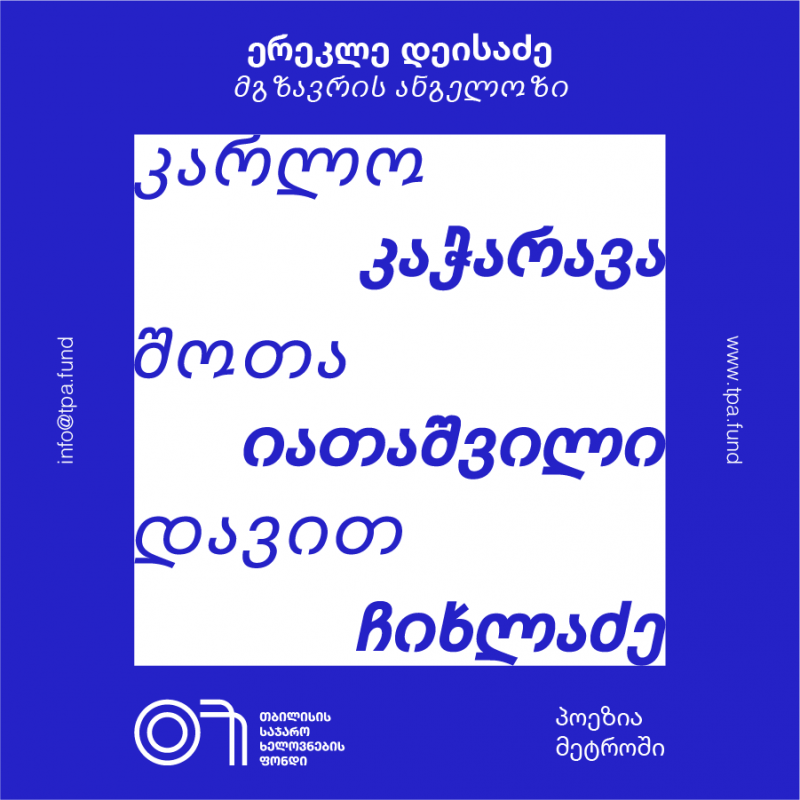 The Tbilisi Public Art Fund is pleased to present a new initiative, Poetry in the Metro, and its first collaboration, Traveler’s Angel, with poet and musician Erekle Deisadze.