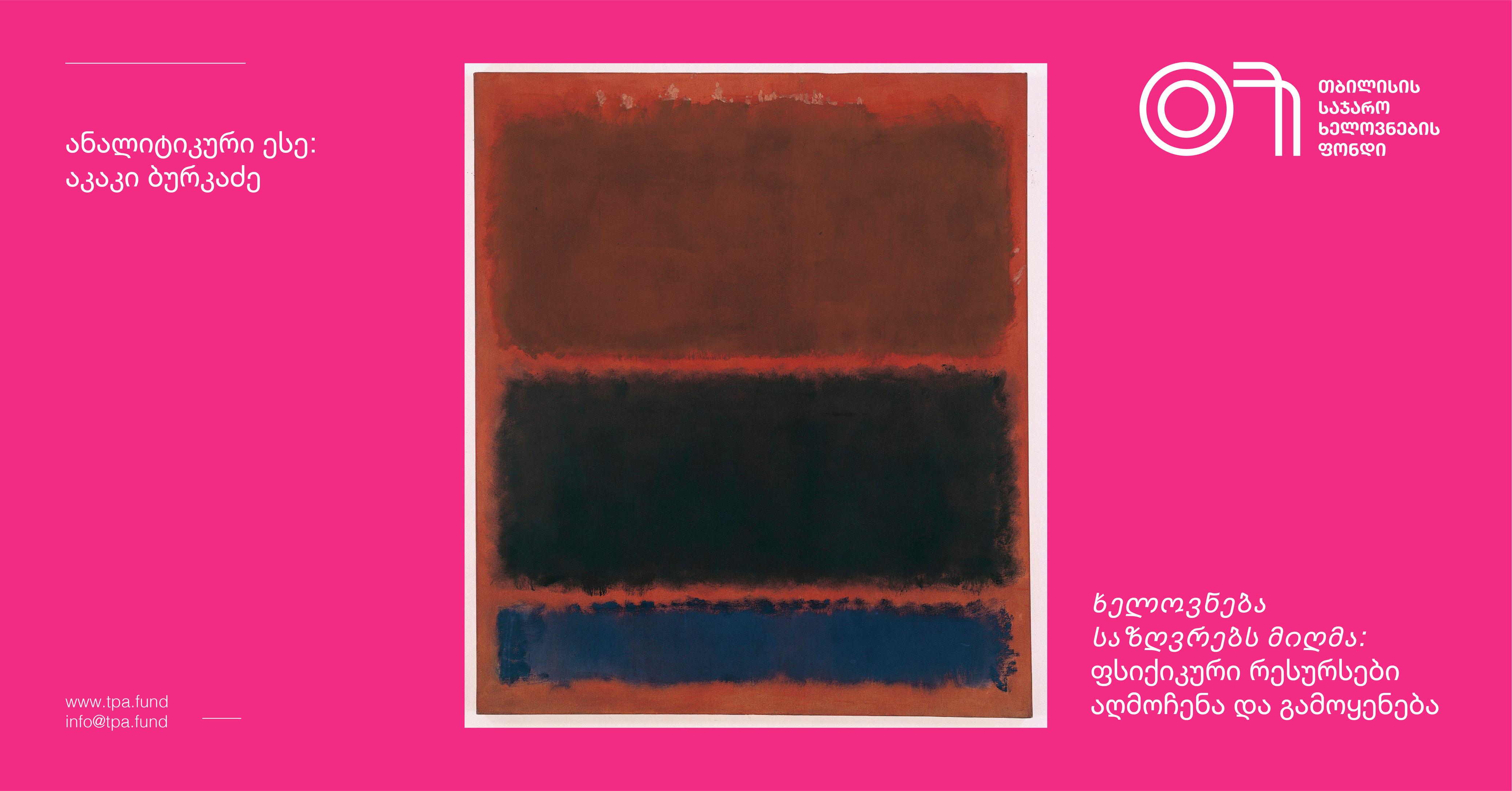 ამ ანალიტიკური ესეს წერისას ინსპირაციის მთავარი წყარო მარკ როთკოს ტილო გახდა - „Mark Rothko, No. 24 (Brown, Black and Blue), 1958”. ყავისფერი, შავი და მუქი ლურჯი ტონების მწუხარებით, სიმძიმითა და მელანქოლიით. ამ ტილოს ობიექტი ადამიანური ისტორიებია. ავტობიოგრაფიული მეხსიერების ფრაგმენტები, ის რაც საერთოდ არ ეხება როთკოს. მას არ გააჩნია სხვა ობიექტი. ფერების მიზანი საკუთარ ქვეცნობიერში ჩაძირვა, იქიდან ამბის ამოტანა და თვითანალიზია. ეს სურათი ჩარჩოა, რომელშიც მნახველმა უნდა ჩახატოს თავისი ისტორია. ის იძლევა ემოციურ სტიმულს გულახდილი საუბრებისთვის. გატაცება ფსიქოლოგიური ლიტერატურით და მითოლოგიით, ძველი სამყაროს არქეტიპებში ჩაძირვა და თანამედროვე ცხოვრებაში გაცოცხლება, თამამი ექსპერიმენტები გამოსახულებებისა და ფერების შერჩევაში - ყველაფერი იმაზე მეტყველებს, რომ როთკომ იცოდა რასაც ქმნიდა. ის ერთ-ერთია მე-20 საუკუნის ლეგენდარულ ფერმწერთა პლიადიდან, ვინც გააცნობიერა, რომ ადამიანის ფსიქიკაში დამალული ღმერთები და დემონები ერთმანეთს თანამედროვე ავტორთა შემოქმედებაში ებრძვიან. ისინი აცოცხლებენ მნახველის ფანტაზიას. მათი მიზანი არ არის ესთეტიური კმაყოფილების მიგვრა და სტატიურ მდგომარეობაში გადაყვანა, არამედ შეგრძნებებისა და ფიქრების გამოწვევა, სულიერი თუ ფიზიკური მოძრაობის წახალისება, და რა თქმა უნდა - ფსიქიკური კათარზისი.
