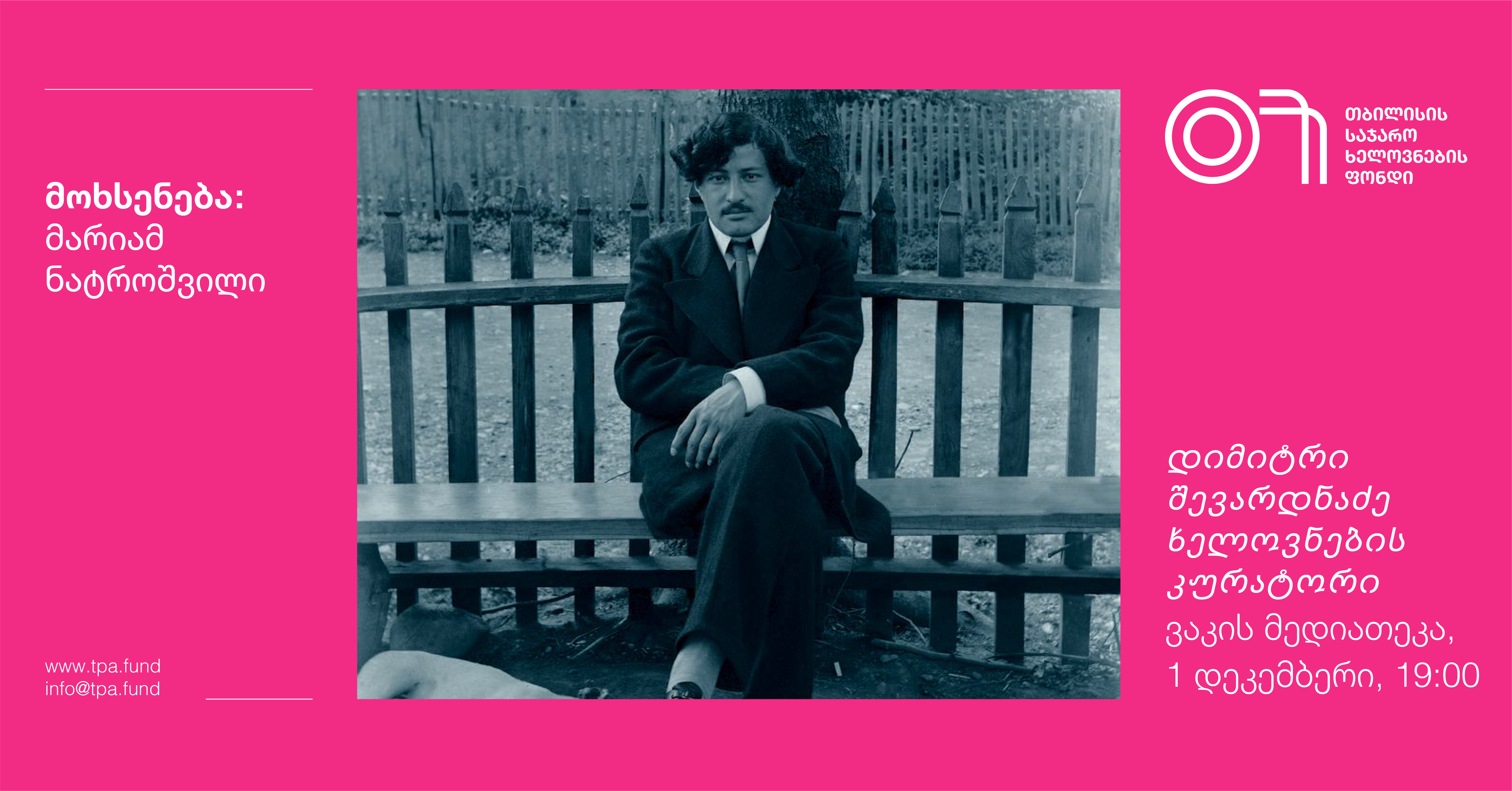 1 დეკემბერს ვაკის მედიათეკაში გაიმართება ხელოვანისა და მკვლევარ მარიამ ნატროშვილის ლექცია “დიმიტრი შევარდნაძე: ხელოვნების კურატორი”. დასწრება თავისუფალია.